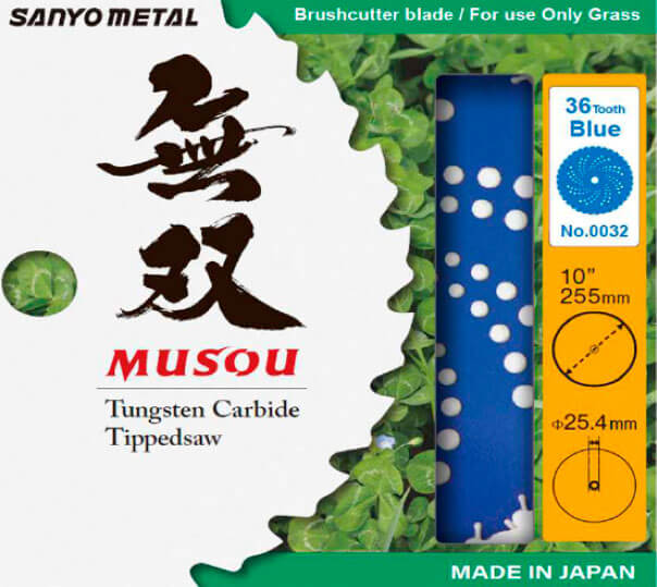 Диск виготовлений зі сталі SKS-5 – зуби з карбіду вольфраму (TCT). Використовується карбід вольфраму без домішок. Надзвичайно зносостійкі леза, що довго зберігають гостроту. Наконечники зубів міцно скріплені оригінальною технікою паяння. Три сторони кожного зуба відполіровано. Виробник гарантує широке та тривале використання. Нижня частина леза має "неглибоку" форму, тому трава потрапляє прямо на вістря і добре зрізається. Спеціальна форма леза поглинає забиті місця, зменшуючи розліт скошеної трави.